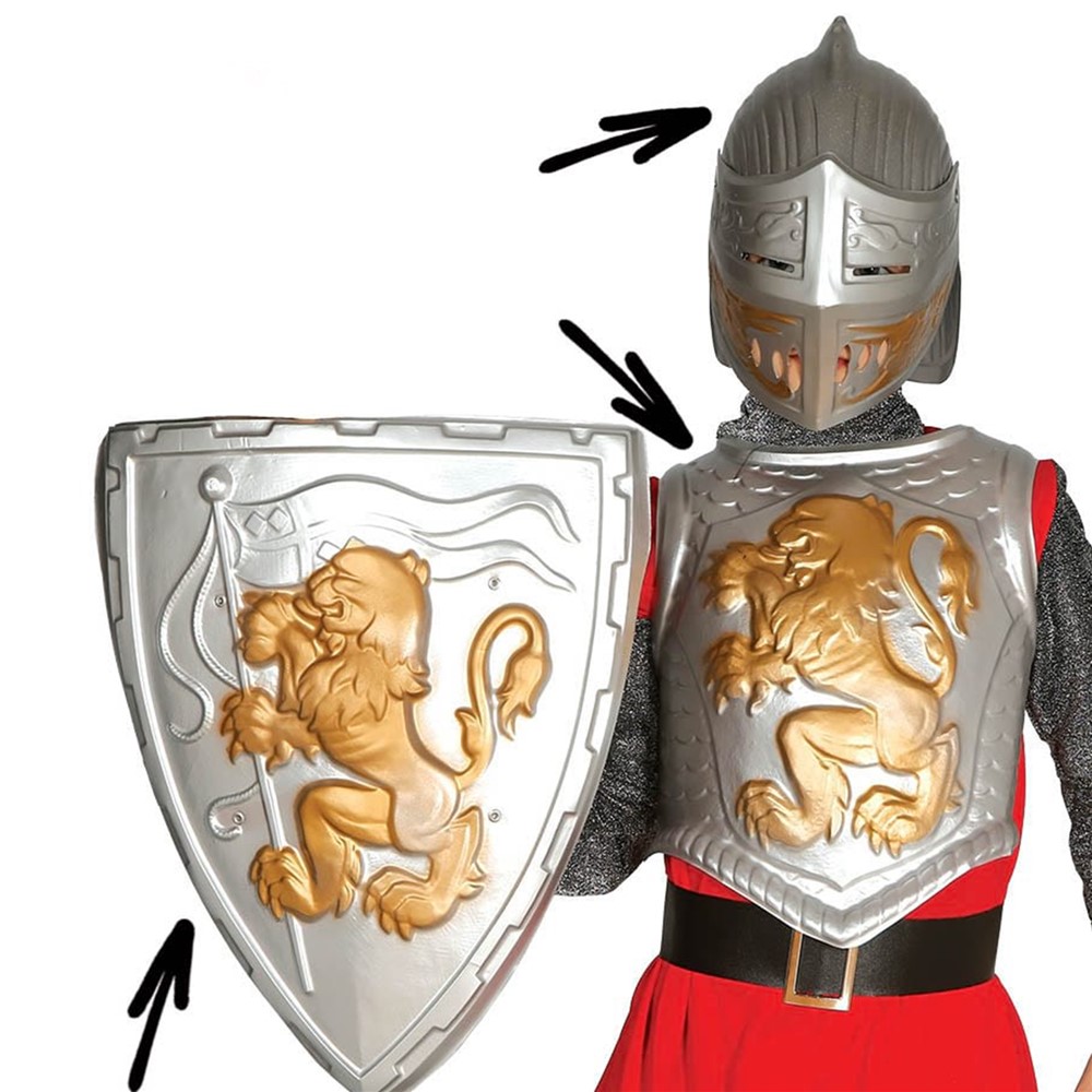 Set mburojë kalorësish, prej materiali plastik e cila përbëhet nga 3 pjesë, mburoja, parzmore, helmetë. Seti është ideal për tematikën e Romakëve luftëtare.