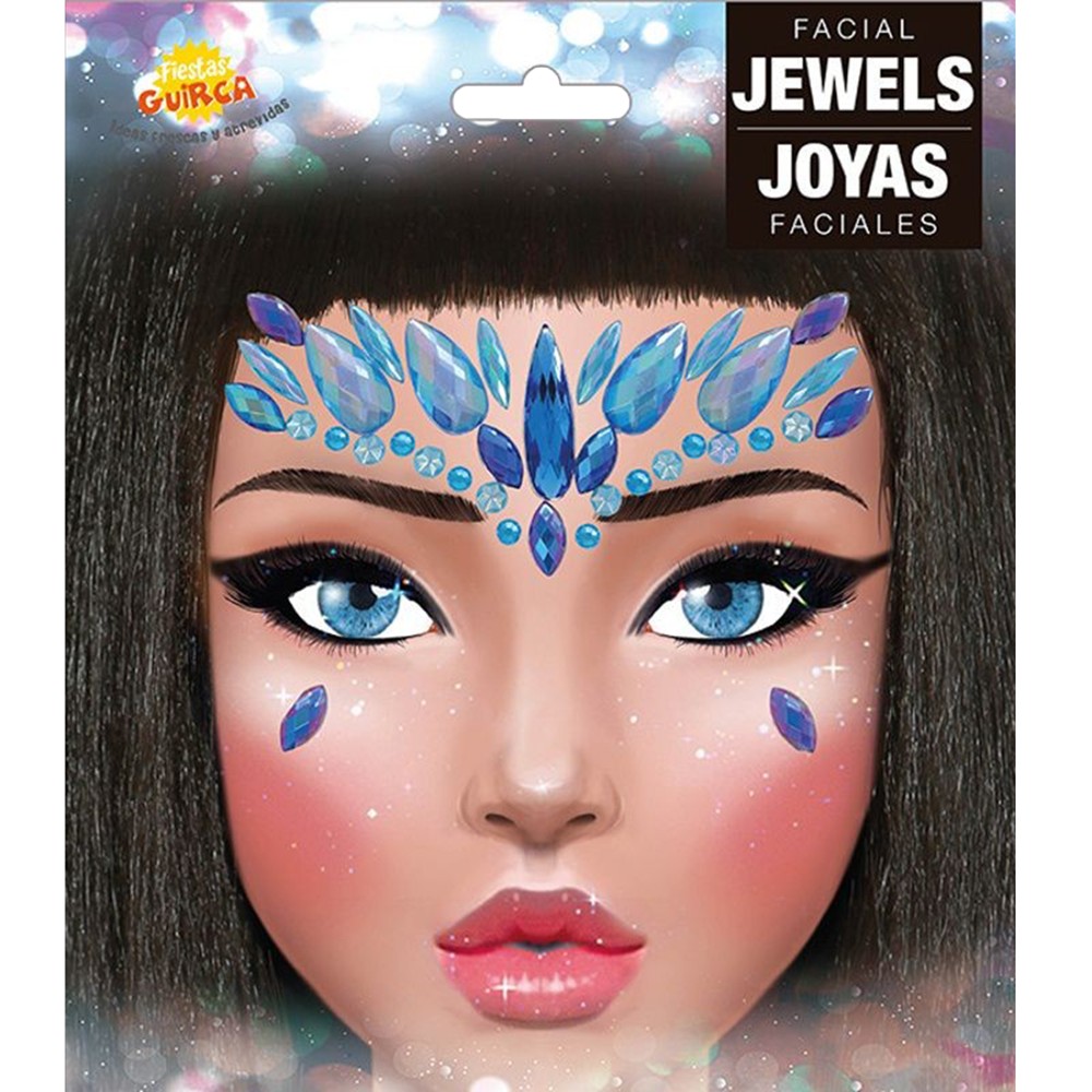 Set me gurë të çmuar, prej materiali plastik, në ngjyra të ndryshme, të pajisur me ngjitës në pjesën e pasme. Përdoren për dekorimin e fytyrës gjatë festave të Halloweenit apo karnavaleve.