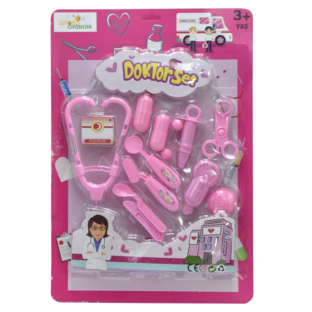 Set me pajisje doktori për fëmijë, i cili përmban një stetoskop, një palë gërshërë, një shiringë dhe pajisje të tjera. Ky set ndihmon në zhvillimin e imagjinatës tek fëmijët, stimulon zhvillimin e aftësive motorike dhe ndihmon në zhvillimin e aftësive të të mësuarit dhe aftësive perceptuese, përmes lojës në role. Materiali përbërës dhe boja nuk kanë përmbajtje toksike apo të dëmshme për fëmijët dhe produkti është i çertifikuar për siguri në përdorim. Ky produkt është i përshtatshëm për përdorim nga fëmijë të moshës mbi 3 vjeç.