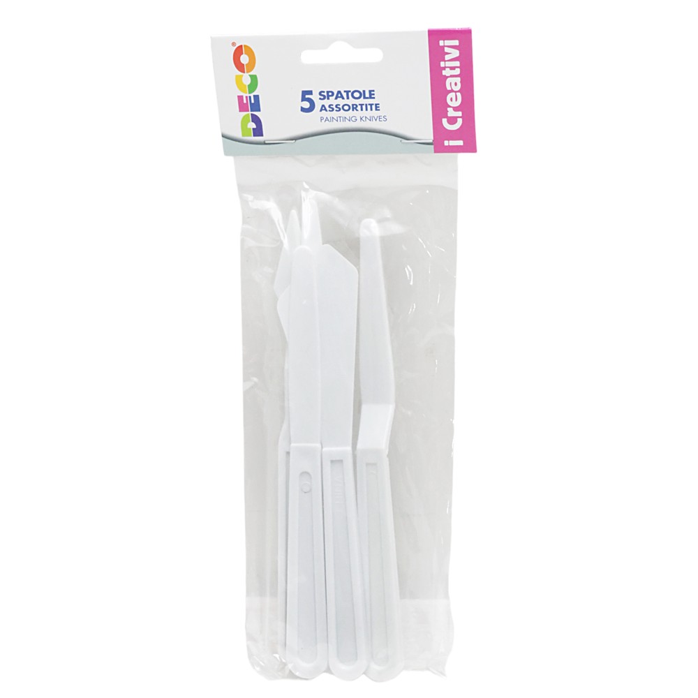 Paketim me 5 shpatulla të bëra nga material akrilik rezistent që i bën ato të lehta dhe fleksibël. Ideale për aplikimin e ngjyrave në kanavacë. Gjatësia maksimale 20 cm.Janë shumë të lehta dhe të thjeshta si për sa i takon pastrimit ashtu dhe magazinimit të tyre.
