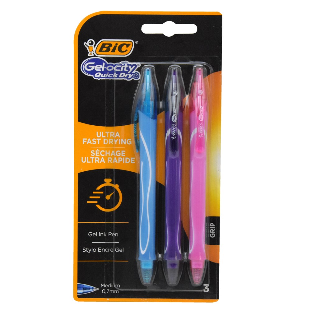 Set me stilolapsa xhel, prej materiali plastik rezistent, me majë në formë sferike, me gjerësi mesatare të vijës prej 0.7 mm, në ngjyrë blu, lejla dhe rozë. Përdoren për të shkruar, skicuar apo për të mbajtur shënime të ndryshme. Stilolapsat kanë veshje gome të butë, e cila përshtatet lehtësisht me formën e dorës. Boja thahet shpejt dhe nuk lë njolla në fletë gjatë përdorimit. Ky produkt është i përshtatshëm për përdorim nga personat që shkruajnë me dorën e majtë.