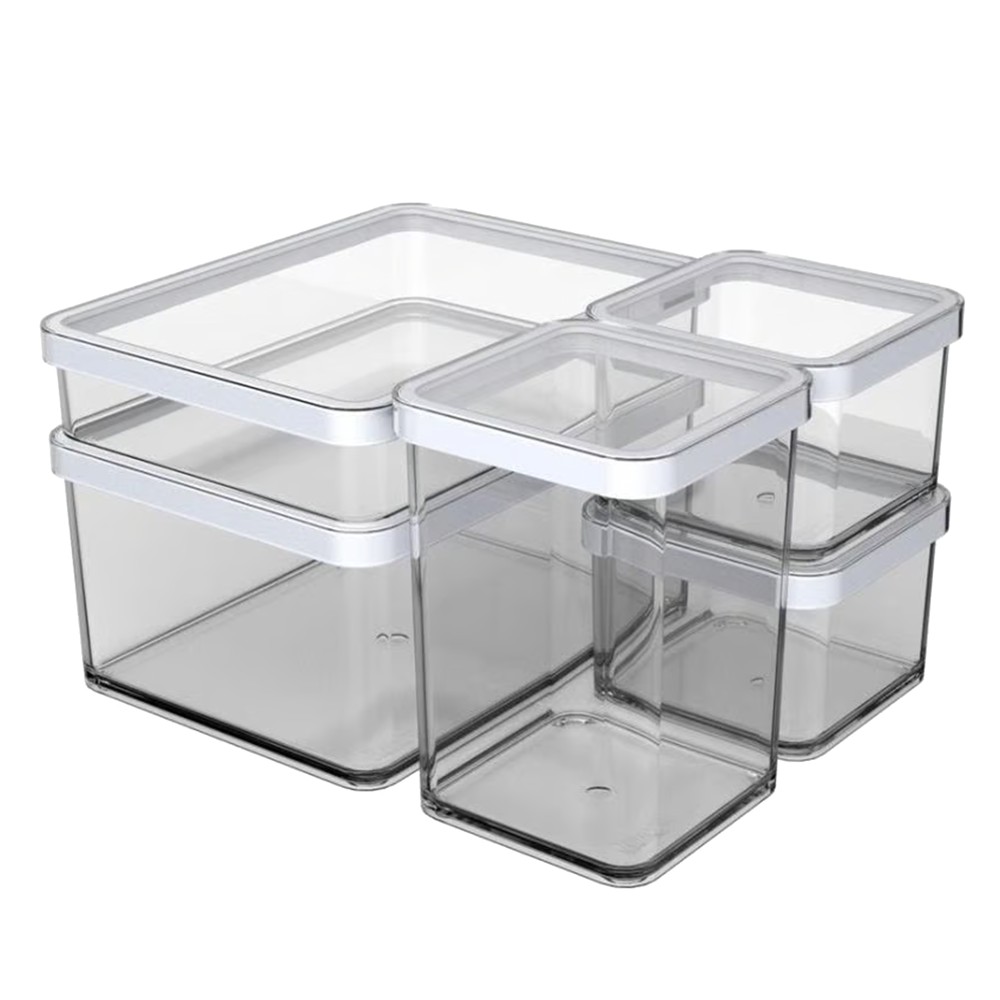 Set me tasa konservues (5 copë), plastike, transparente/e bardhë, 1x2.25 L / 2x1 L / 2x0.5 L