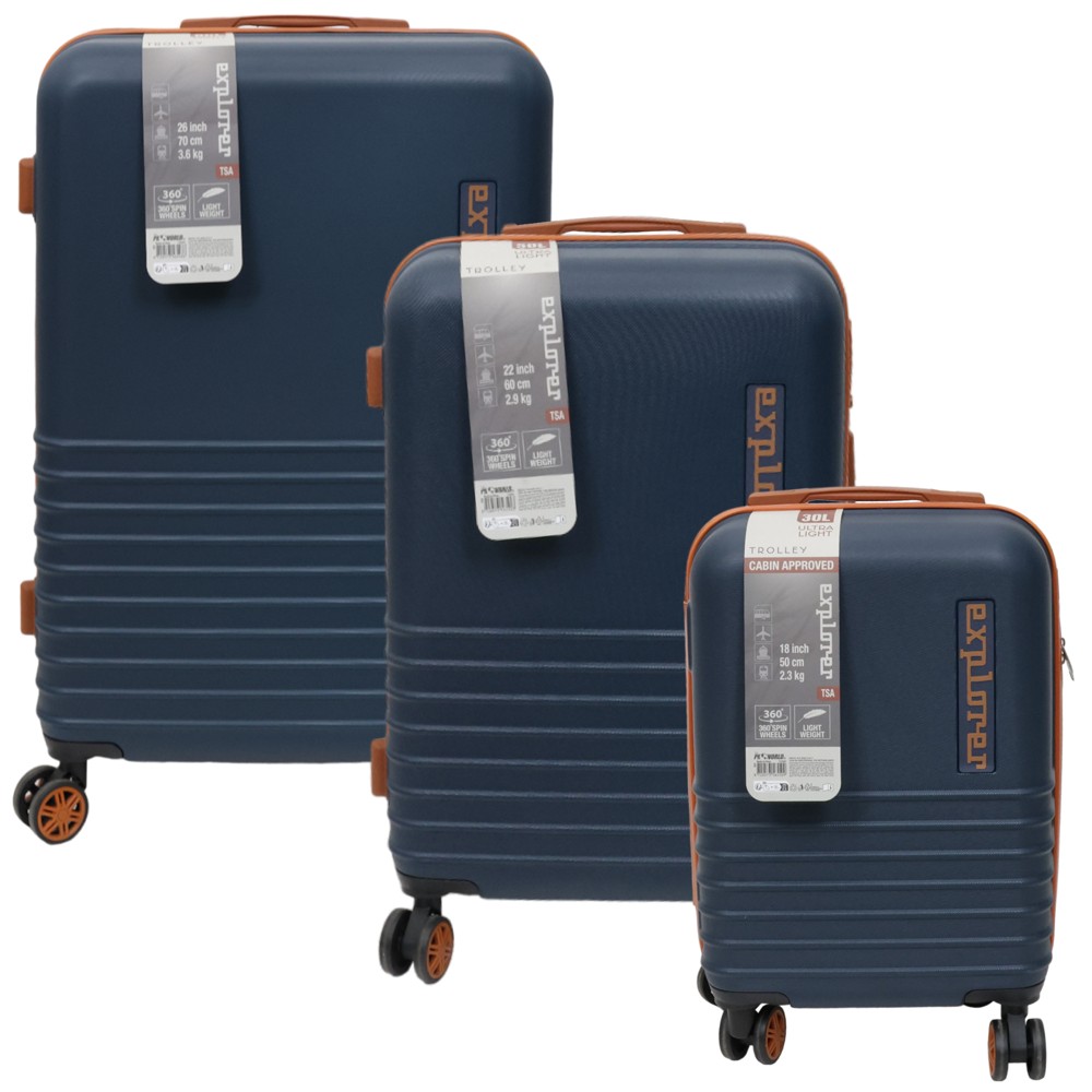 Komplet i plotë me tre valixhe në madhësi të ndryshme për raste të ndryshme, bagazh udhëtimi të qëndrueshëm me katër rrota dhe bllokues me kod sigurie TSA. Materiali është plastikë e ngurtësuar ABS e cila është material cilësor, i papërshkueshëm nga uji, i fortë me rezistencë të mirë ndaj gërvishtjeve. është e pajisur me dorezë teleskopike, një xhep të madh kryesor me një zinxhir të dyanshëm. Bllokimi i sigurisë TSA me një kod numerik është mënyra më e mirë për të garantuar sigurinë e bagazhit tuaj. Pjesa e brendshme e valixhes është e pajisur me rripa elastikë për të siguruar atë që keni paketuar. Ka 4 rrota që mund të rrotullohen me 360 °.