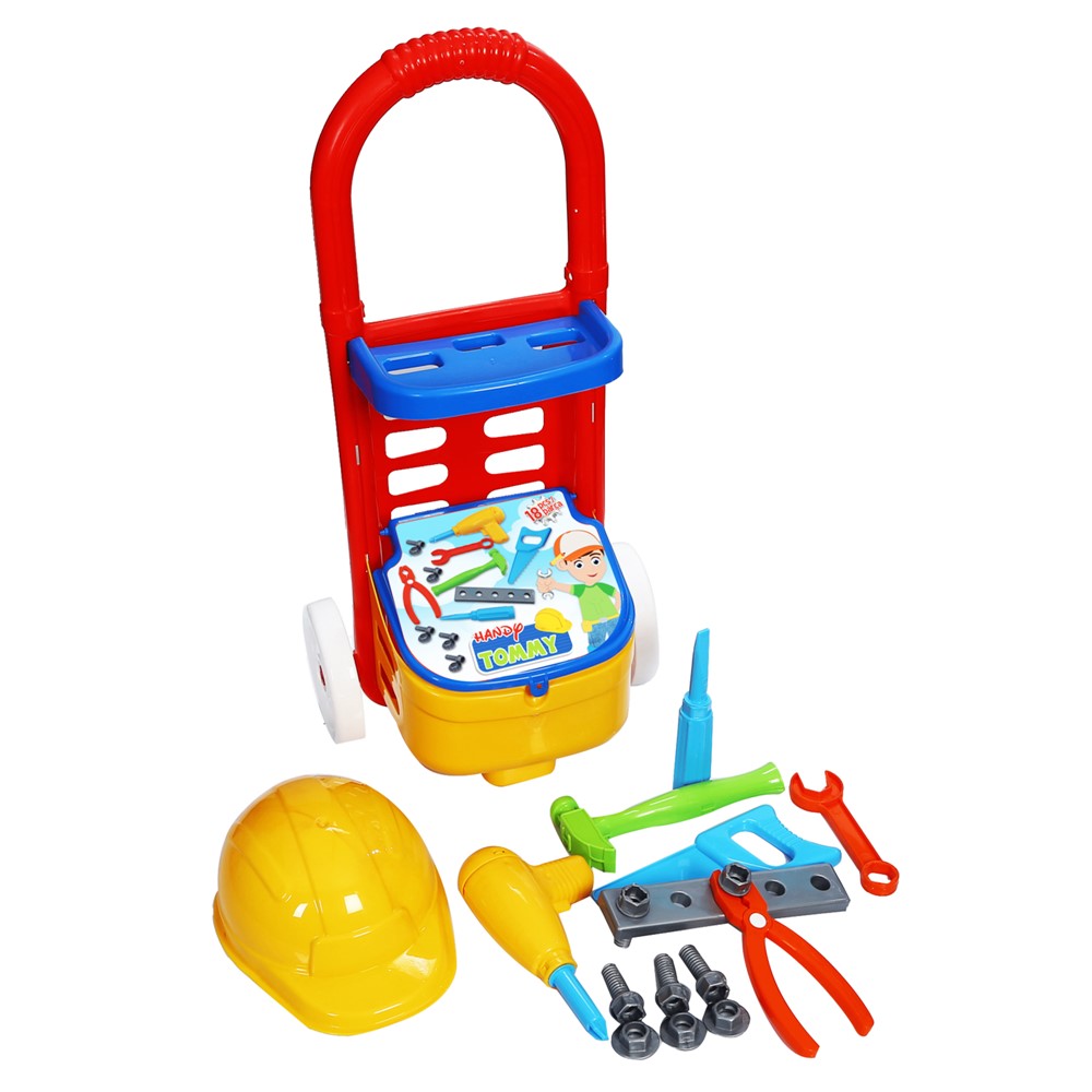 Po vlerësoni:Set me vegla pune lodër për fëmijë, Handy Tommy, plastikë, 58 cm, e kuqe, e verdhë dhe blu, 14 copë