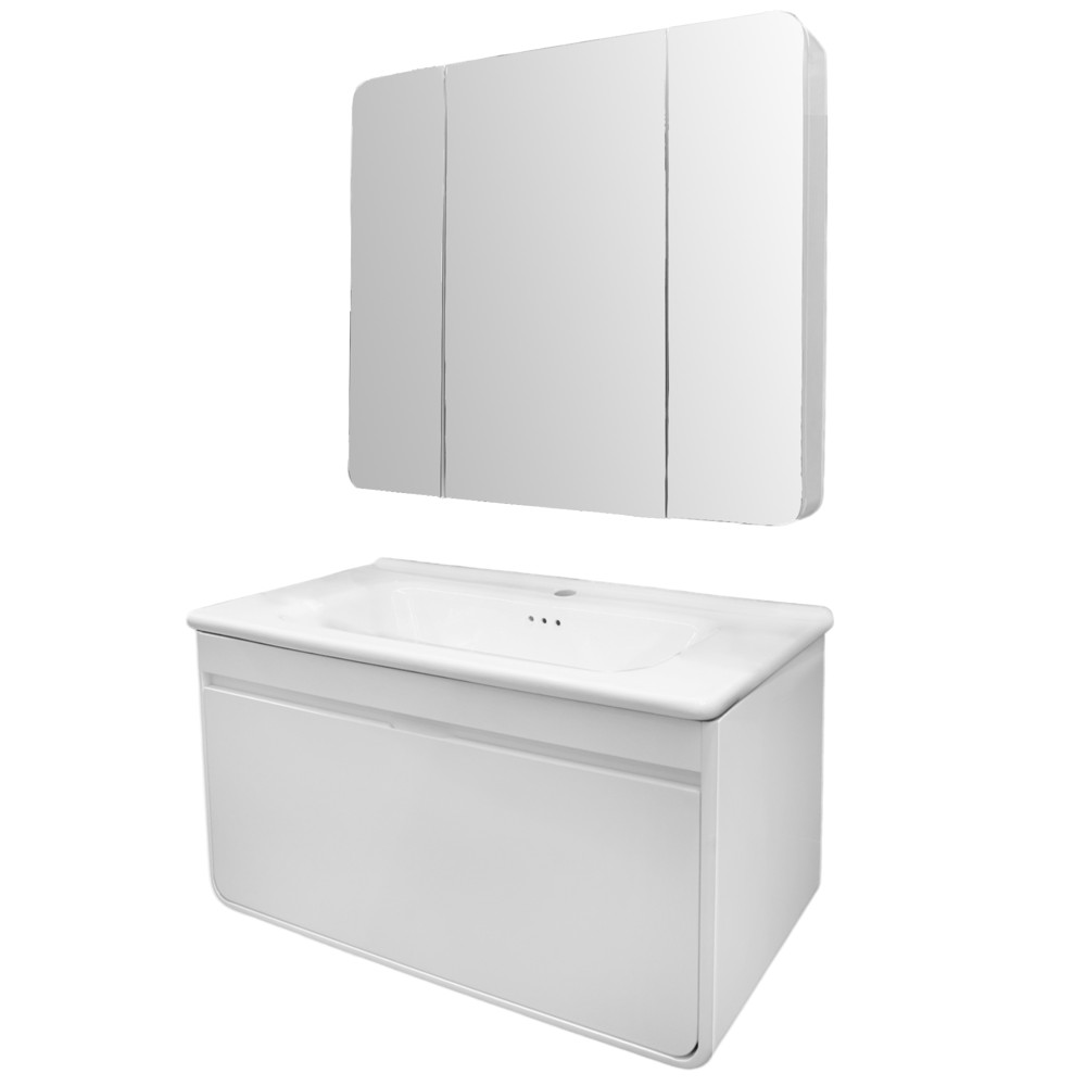 Jeni të mërzitur nga ngjyrat dhe pamja tradicionale e tualetit tuaj? Zgjidhja ideale është seti I mobiljes për tualet "Marcy" e cila vjen me një ngjyrë lejla të hapur duke shtuar freski dhe një prekje ndryshe banjës tuaj. Seti përbëhet nga mobilja, lavamani dhe pasqyra LED. Mobilja ëstë ideuar në material PVC, ideale për ambjente me lagështirë si tualeti, si dhe me montim në murë duke ju mundësuar akses të shpejtë për pastrim të thjeshtë. Lavamani prej porcelani të cilësisë së lartë është mjaft i bollshëm si dhe ka hapësirë për mbështetjen e aksesorëve të tualetit. Pasqyra e pajisur me ndrricim LED si dhe me kanate është tepër praktike. Përmasat e mobiljes : lartësia 40 cm x gjerësia 90 cm x thellësia 48.5 cm. Përmasat e lavamanit : gjerësia 90 cm x thellësia 48.5 cm. Përmasat e pasqyrës : lartësia 75 cm x gjerësia 85 cm x thellësia 13.5 cm.