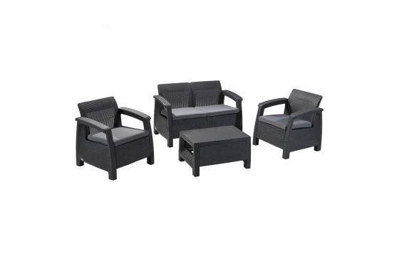 Seti Novara është një set mobiljeje për ambientet jashtë, i përbërë nga dy kolltukë tek dhe një kolltuk dopjo, të shoqëruar me një tavolinë mesi. Të gjitha pjesët janë të bëra nga ratan plastik në ngjyrën antrazit, duke i dhënë një pamje të bukur dhe të modernizuar. Kolltukët tek janë komod dhe spacioz, me dimensione 75x70xH79cm, duke ofruar një vend ideal për shplodhje. Kolltuku dopjo është më i madh, me dimensione 128x70xH79cm, duke siguruar më shumë hapësirë për tu relaksuar. Tavolina mesit ka dimensione 77x57xH42cm, duke ju mundësuar që të shërbni pije, ushqime, libra ose çfarëdo që ju dëshironi të keni pranë. Ratan plastik ofron një kombinim të mirë të rezistencës dhe lehtësisë së mirëmbaitjes dhe pastrimit, duke e bërë këtë set ideal për përdorim jashtë, pasi është i qëndrueshëm ndaj agjentëve atmosferik. Seti është dizajnuar për tu përshtatur me stilin dhe kërkesat e ambientit jashtë, duke siguruar një atmosferë të bukur dhe të përshtatshme për të shijuar momentet jashtë në të gjitha stinët e vitit. Montimi i setit është i lehtë, ku brenda paketimit do të gjeni manualin e montimit si dhe link e videos udhëzuese për montim.