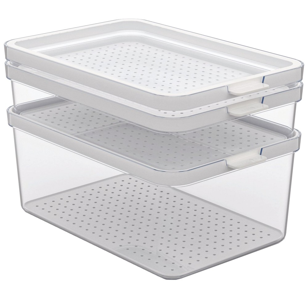 Fridge organizer set (3 pieces), plastic, transparent/white, 1x1.3 L / 1x2.6 L / 1x4.65 L