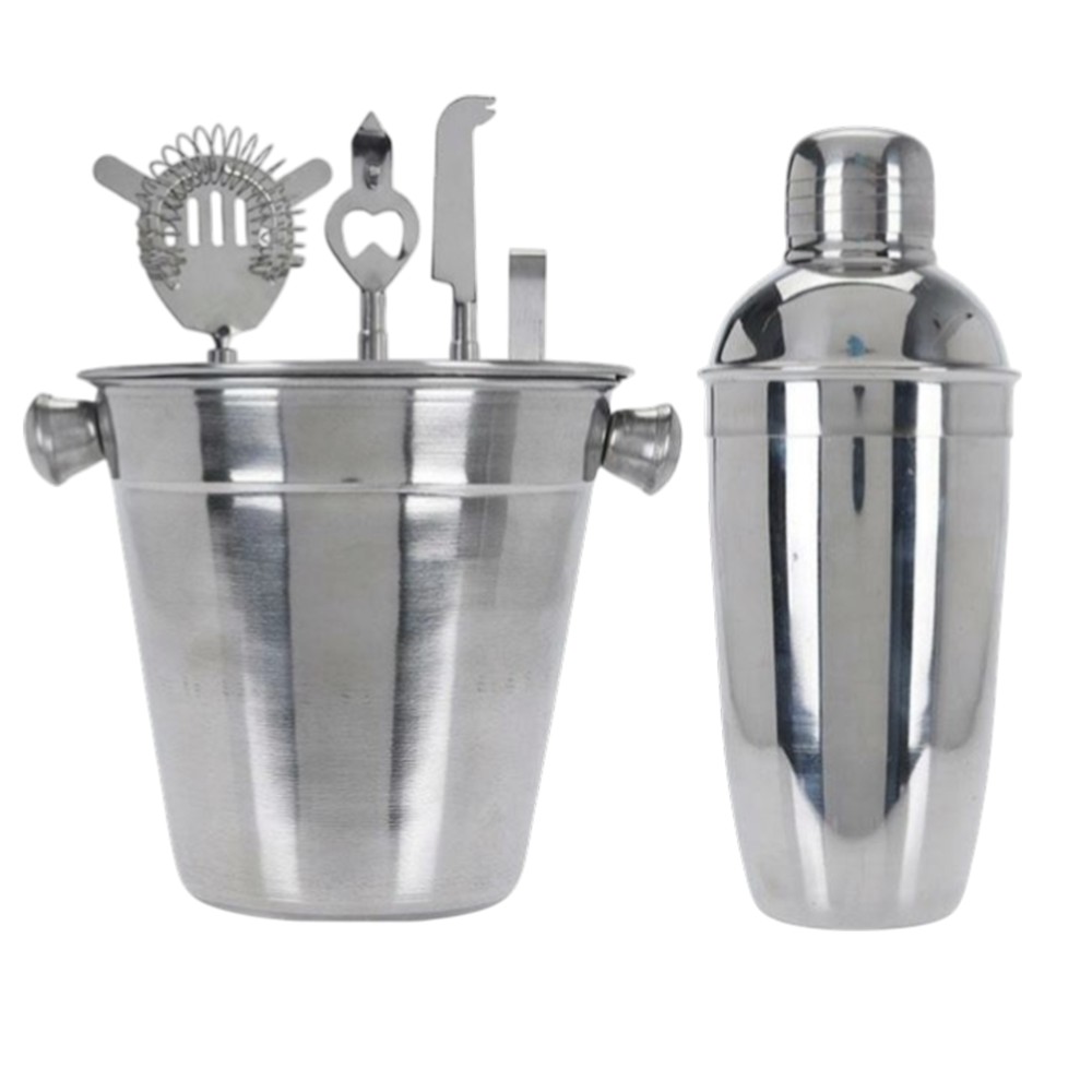 Set për përgatitje kokteil (PK6), inoks, ngjyra argjend, 15x15x24 cm