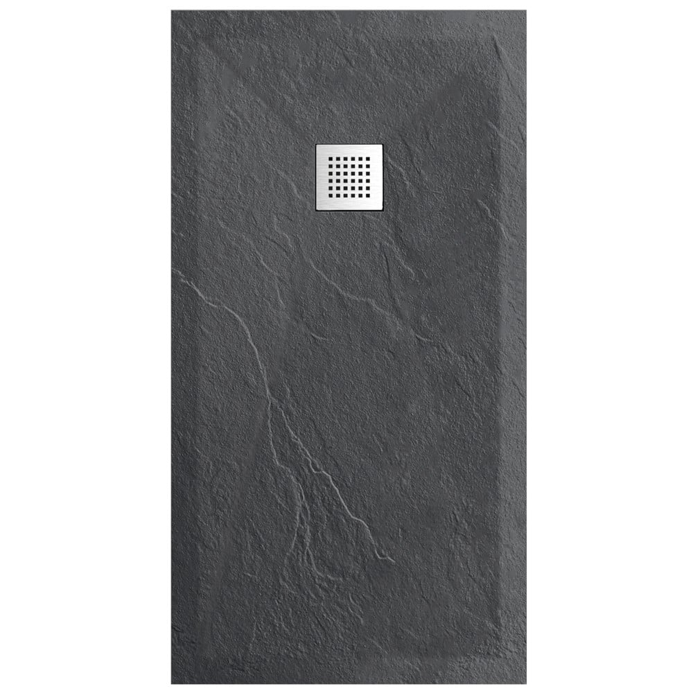 Set pllakë dushi+ piletë shkarkimi, rezinë , me efekt guri, gri e errët, 160x80xH2.5 cm