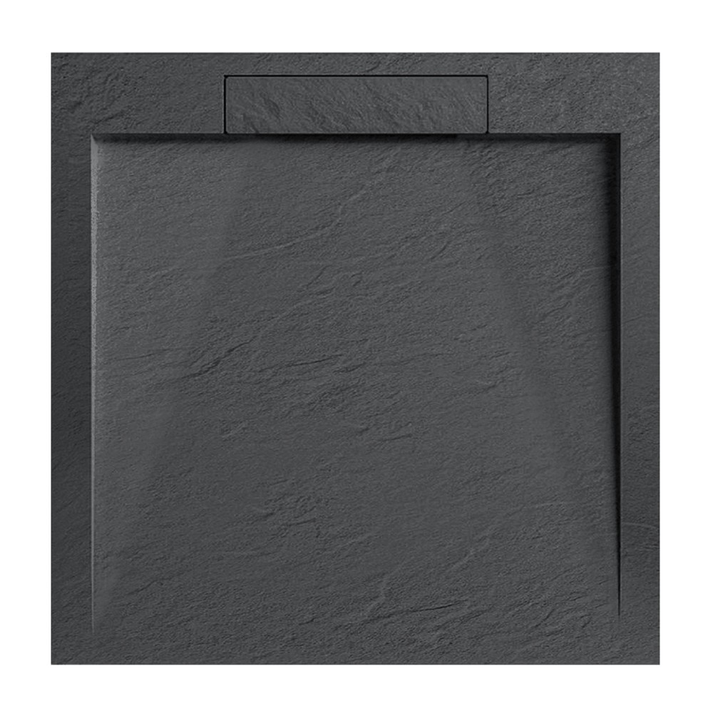 Pllakë dushi e prodhuar nga kombinimi i materialeve rezinë cilësore dhe karbonat kalciumi, që i jep fortësinë e duhur dhe rezistencë ndaj dëmtimeve. Ky kombinim është gjithashtu edhe antibakterial, që është një nga cilësitë kryesore të kësaj pllake dushi. Gjithashtu, sipërfaqja me efekt guri e bën këtë pllakë të jetë kundra rrëshqitjes, që e bën shumë të sigurt përdorimin e saj. Kjo pllakë dushi vjen në ngjyrë gri të errët dhe është lehtësisht e pastrueshme. Përmasat janë 80x80xH2.5 cm por mund të përshtatet shumë lehtë pasi mund të pritet në përmasat e nevojshme. Në set përfshihet gjithashtu edhe pileta e shkarkimit.