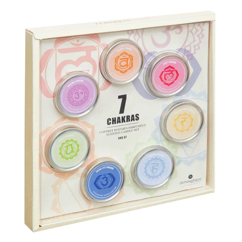Seti qiri aromatik "Chakras" është një koleksion i përbërë nga 7 qirinjë aromatikë, secili me një ngjyrë dhe aromë unike, për të stimuluar dhe harmonizuar çakrat në trupin dhe shpirtin tuaj. Çdo set "Chakras" përmban 7 qirinjë aromatikë, të cilët janë bërë nga parafina e lartësisë së kualitetit, dhe secili pesha 48 gramë.