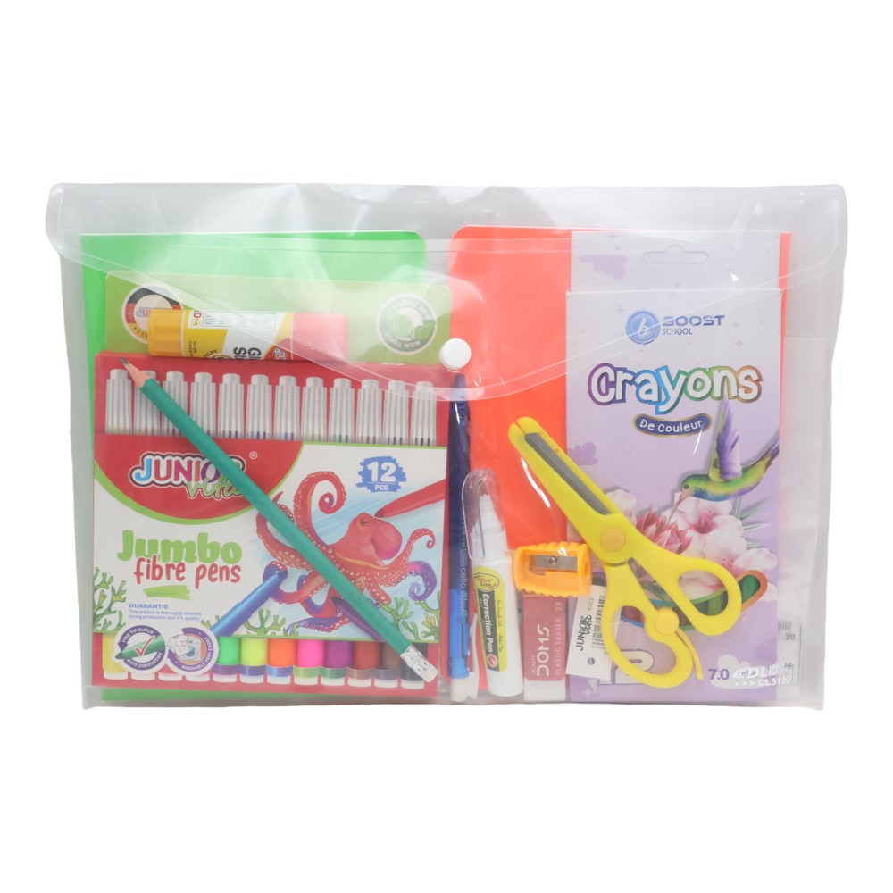 Seti shkollor promocion për fëmijë përmban mjete të ndryshme shkollore, të dizajnuara për të mbështetur aktivitetet e përditshme në shkollë. Ky set ofron gjithçka që i nevojitet një fëmije për të filluar vitin shkollor, duke përfshirë lapsa, ngjyra, dhe aksesorë të tjerë të nevojshëm.