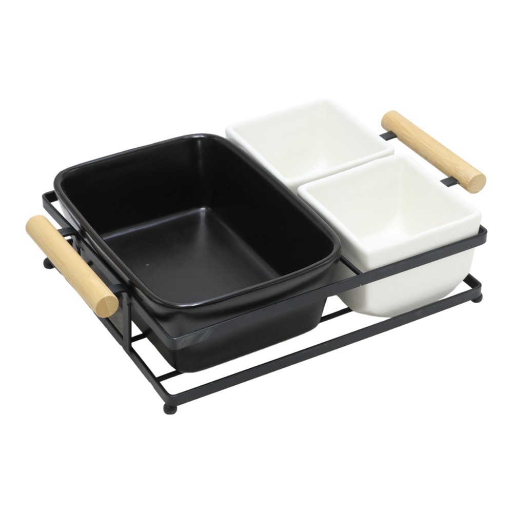 Po vlerësoni:Antipasti bowls with stand, ceramic/metal, white/black, 19x28x7 cm