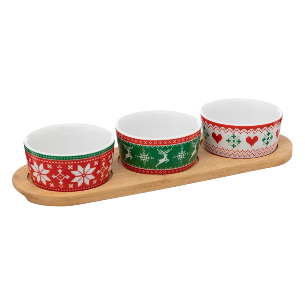 Set tasa antipasta (PK 3), porcelan+bambu, ngjyra të ndryshme, Dia.8.5x4 cm