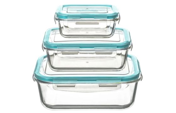 Set tasa hermetik (PK 3), qelq/PP, transparent/blu, 330/800/1730 ml