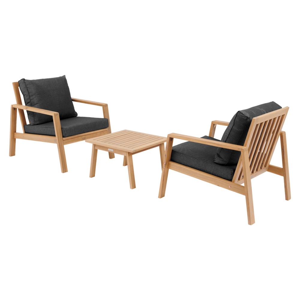 Set Tiwi 2 karrige + 1 tavolinë, dru akacia, kafe / e zezë, karrige 85x69xH76 cm / tavolin 55x55xH35cm