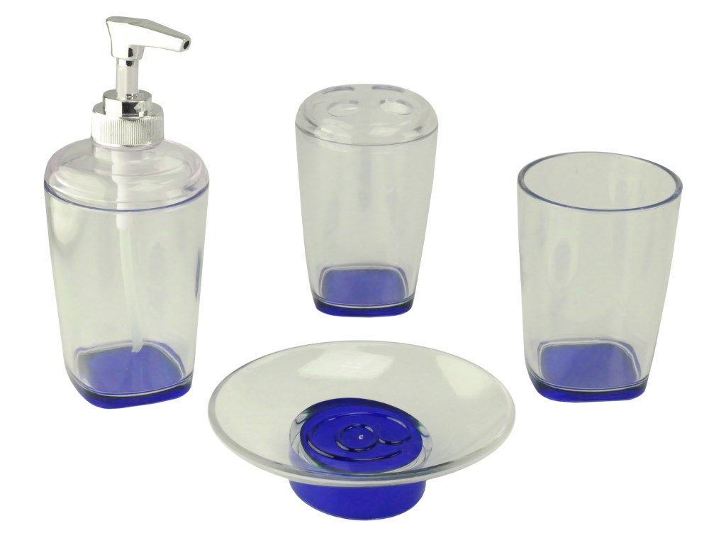 Shtojini elegancë tualetit tuaj me setin e aksesorëve "All 4 Bath". Me katër artikuj të ndryshëm, pjesë e ketij seti ju mund të krijoni kombinime të shkëlqyera për një ambjent të personalizuar. Seti i aksesorëve të tualetit "All 4 Bath" është një zgjidhje efikase për një shumëllojshmëri tualetesh. Materiali i lehtë plastik, transparent kombinuar me bazën në ngjyrë blu, mundëson përdorim praktik dhe përshtatshmëri në ngjyrë për tualetet. Dizajni plot stil dhe eleganca në formë, si dhe kombinimi i ngjyrave të setit e bëjnë këtë produkt të përshtatshëm për tualete bashkëkohore duke iu dhënë më tepër hijeshi këtyre ambienteve.