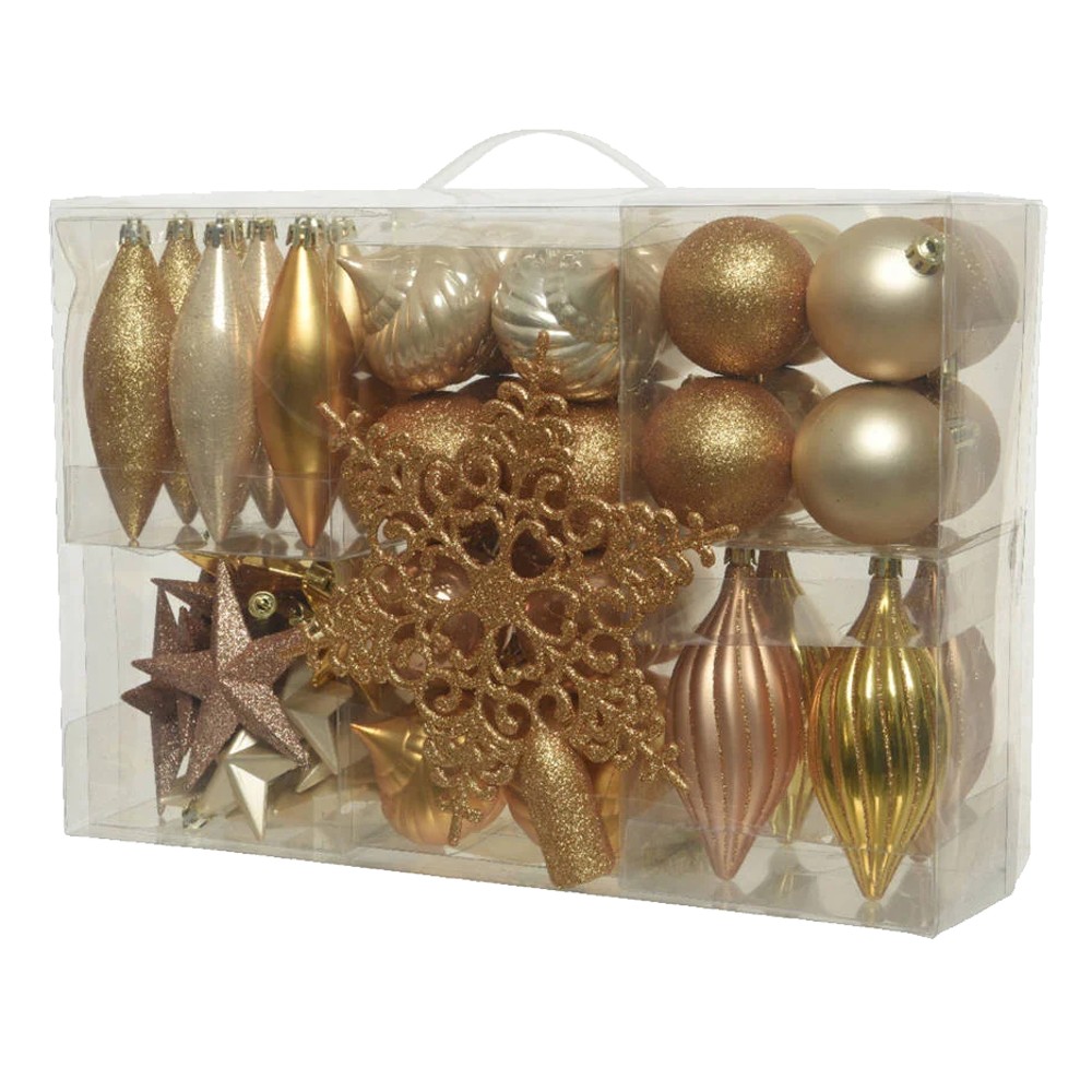 Sferat dekoruese plastike për Krishtlindje dhe Vitin e Ri janë produkte të zakonshme dhe të shpërndara gjerësisht që përdoren për të shtuar një ndjesi festive dhe magjepsëse në dekorimin e shtëpisë, pemës së Krishtlindjeve, tavolinës së festave dhe ambienteve të tjera festash. Këtu është një përshkrim i këtyre sferrave dekoruese: Materialet dhe konstruksioni: Sferat janë të bëra prej plastike, një material i lehtë dhe i qëndrueshëm që lejon formën dhe ngjyrat e ndryshme të dizajnit. Kjo plastikë është zakonisht e qëndrueshme ndaj kushteve të ndryshme atmosferike, duke e bërë atë të përshtatshme për përdorim të jashtëm dhe të brendshëm. Ngjyrat dhe Dizajni: Sferat janë të disponueshme në një gamë të gjerë ngjyrash dhe dizajnesh. Ngjyrat më të zakonshme përfshijnë të kuqen, e gjelbërtën, e artën, dhe argjendën, por ka gjithashtu variante të tjera me ngjyra dhe dekore të ndryshme. Sferat mund të jenë të ndryshme në madhësi dhe ngjyra, duke lejuar kombinime të shumta dhe kreativitet në dekorimin e festave. Dimensionet: Sferat janë të disponueshme në madhësi të ndryshme, nga sferat e vogla që përdoren për detalë të vogla dekorative deri te sferat më të mëdha që bëjnë një deklaratë më të madhe. Madhësia më e zakonshme është rreth 10-15 centimetra në diametër, por ka edhe sfera më të mëdha për dekorime të jashtme të mëdha. Përdorimi: Sferat dekoruese janë të përshtatshme për të vendosur në pemën e Krishtlindjeve, në tavolinën e festave, në ballkone, në dyqane, dhe në ambiente të tjera festash. Ato shpesh vendosen në grupime të ndryshme për të krijuar efekte të veçanta dhe të bukura. Sferat dekoruese plastike janë një pjesë e rëndësishme e dekorit festiv për Krishtlindje dhe Vitin e Ri, dhe me shumëllojshmërinë e tyre në ngjyra dhe dizajne, ata mund të përshtaten me çdo stil dhe shije të dekorit festiv.