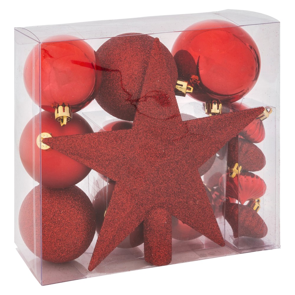 Sfera dekoruese (pk18), plastike, ngjyre e kuqe, permasa te ndryshme