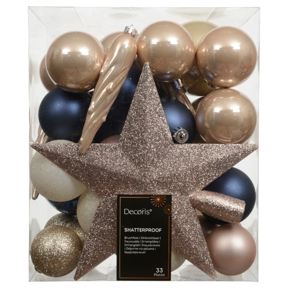 Po vlerësoni:Decorative spheres (pk33), glass, blue, cream, champagne, D8 cm