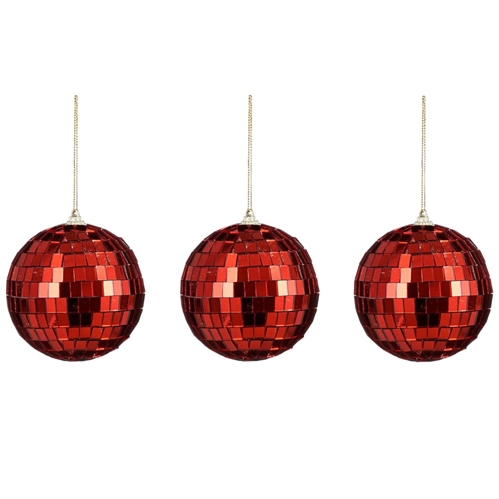 Sfere dekoruese ªMirror ballª (pk 3 ), plastike, ngjyre e kuqe me shkelqim, D 8 cm