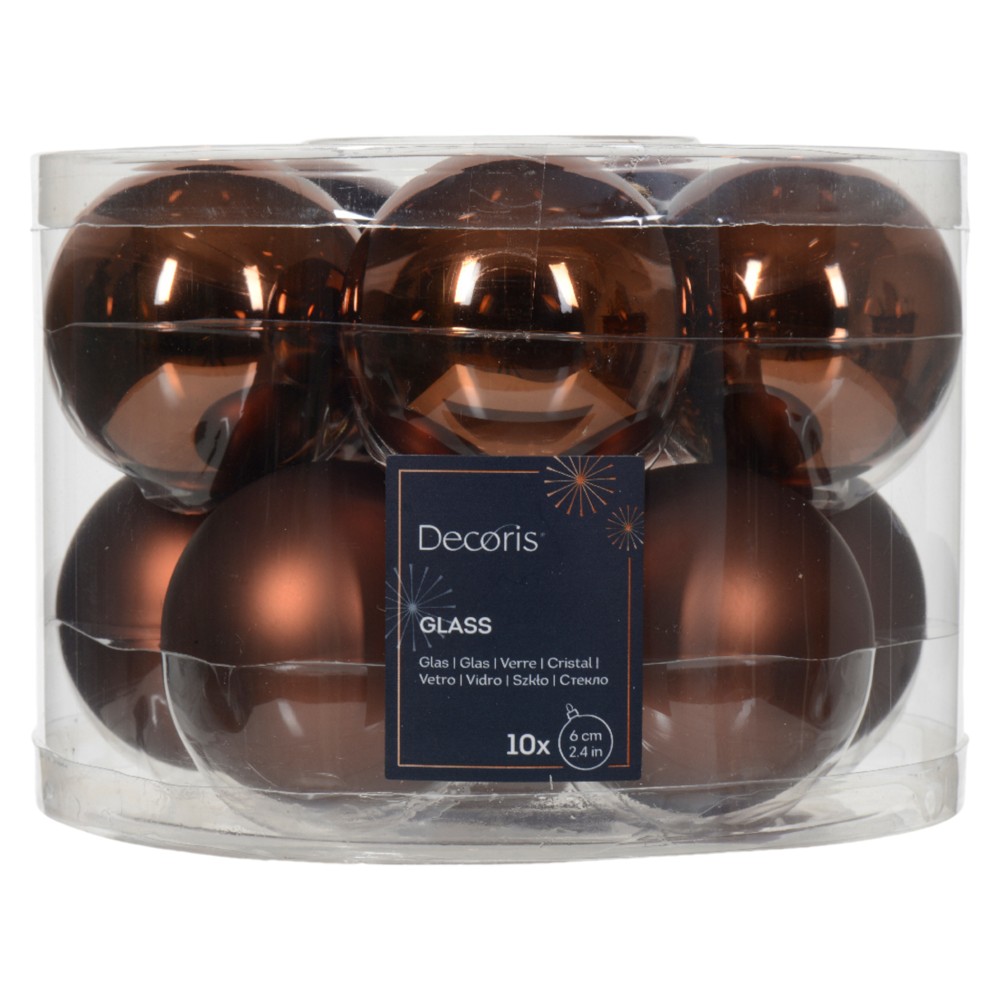 Sfere dekoruese (pk 10), qelq, ngjyre kafe (espresso), D 6 cm