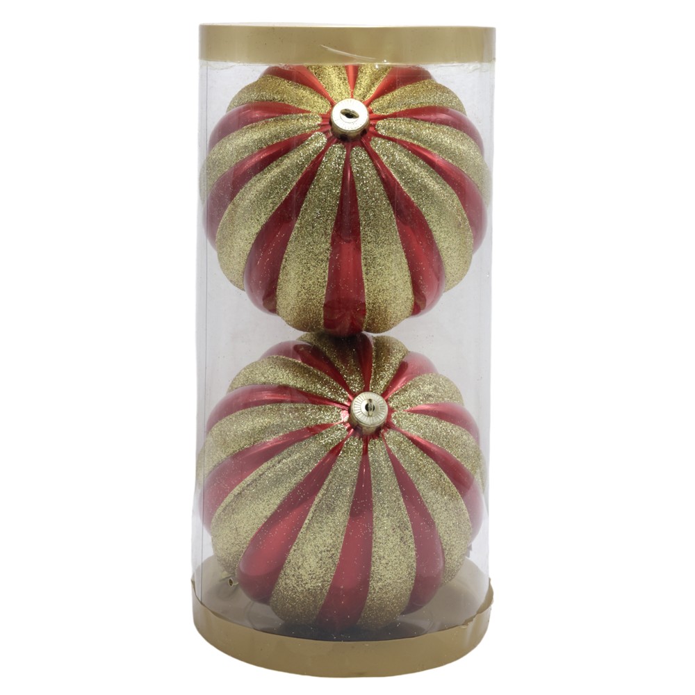 Christmas baubles (pk 2), plastic, red, gold & glitter, 20 cm