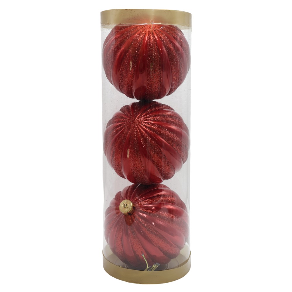 Sfere dekoruese (pk 3), plastike, e kuqe & gliter, 15 cm