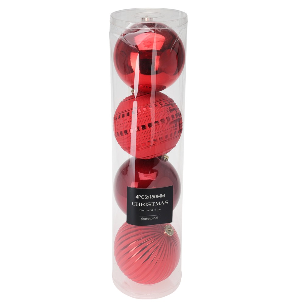 Sfere dekoruese (pk 4), plastike, ngjyre e kuqe, 15 cm
