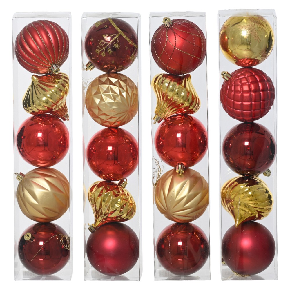 Sfere dekoruese (pk 5), plastike, ngjyre e kuqe, gold, D8 cm