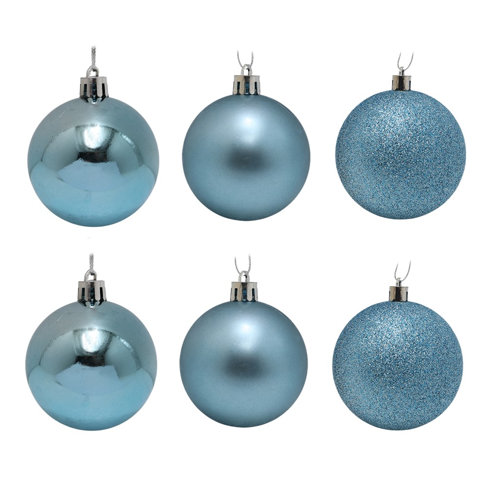 Decorative balls (pk 6), plastic, sky blue color, 3 models, 6 cm