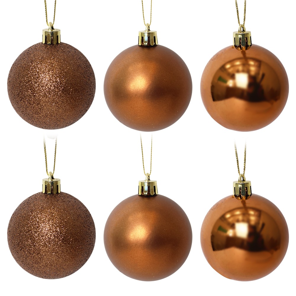 Decorative balls (pk 6), plastic, bronze, 3 models, 6 cm