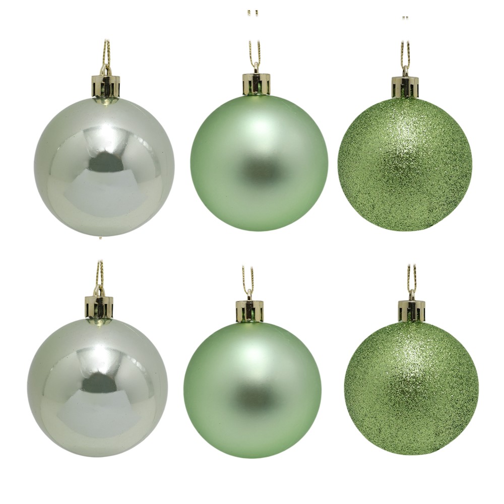 Po vlerësoni:Decorative balls (pk 6), plastic, mint color, 3 models, 6 cm