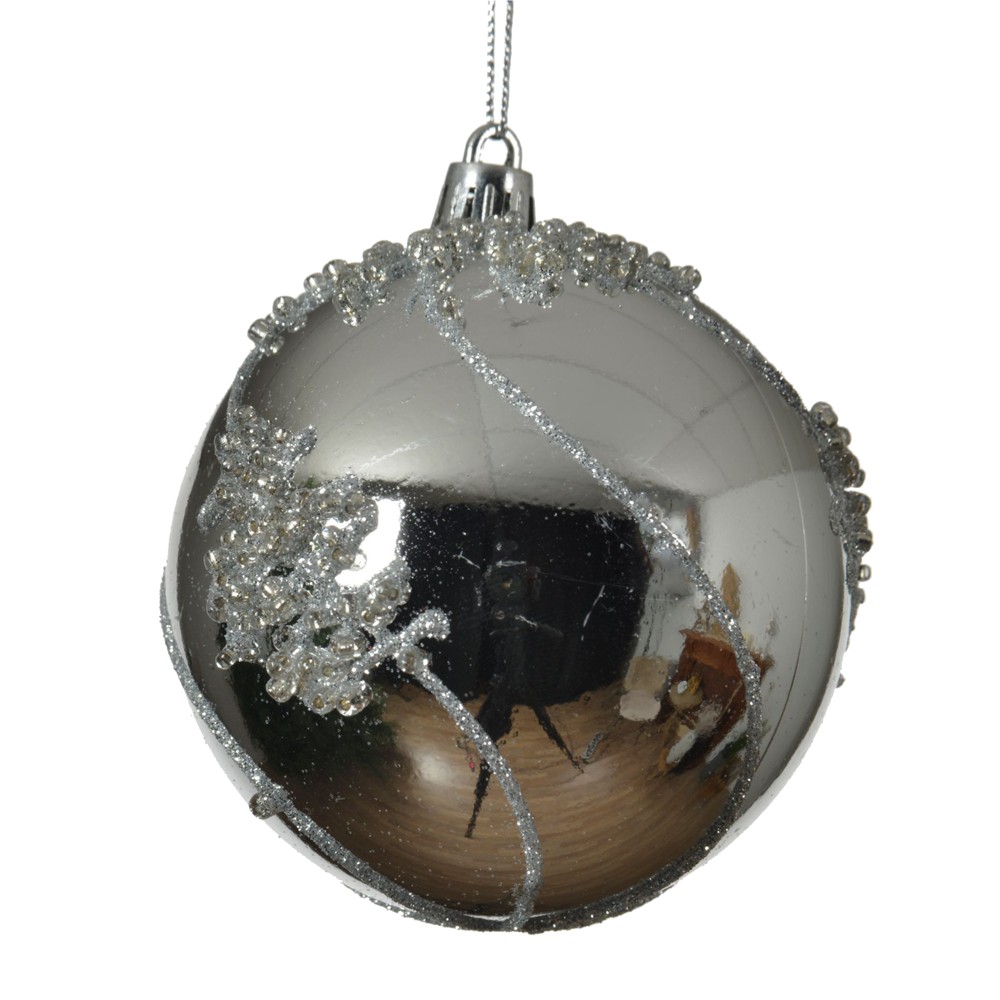 Sferë dekoruese, plastike, argjendi, Dia.8 cm