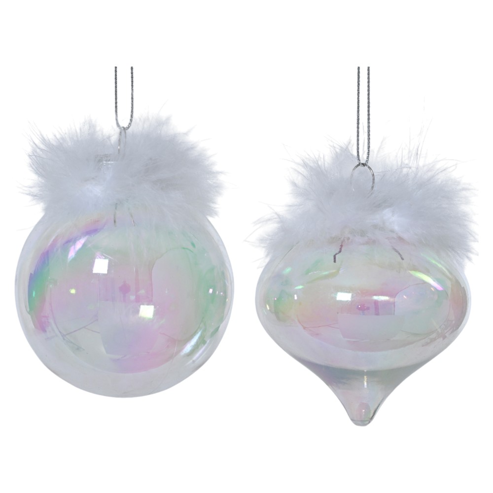 Po vlerësoni:Decorative sphere, plastic, transparent color, feather decoration, D8 cm