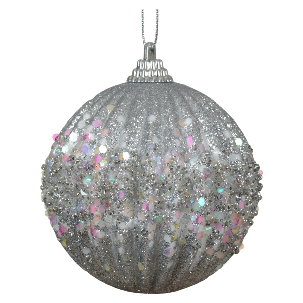 Po vlerësoni:Sfere dekoruese, plastike, silver gold me gliter, D 8 cm