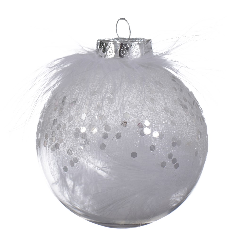 Sfere dekoruese, plastike, transparente/e bardhe, dia: 8 cm, 1 cope