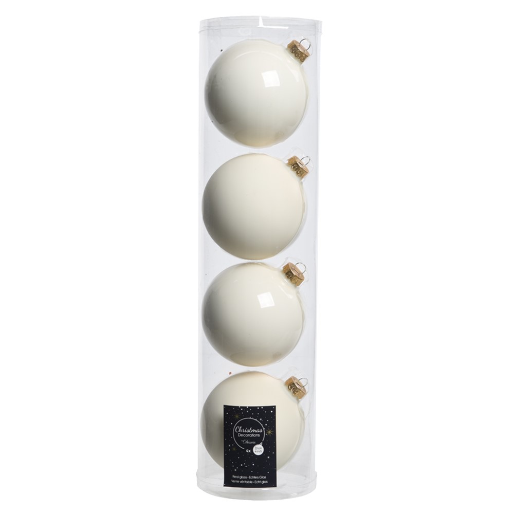 Sfere dekoruese, qelq, e bardhe, dia 10 cm, 4 cope