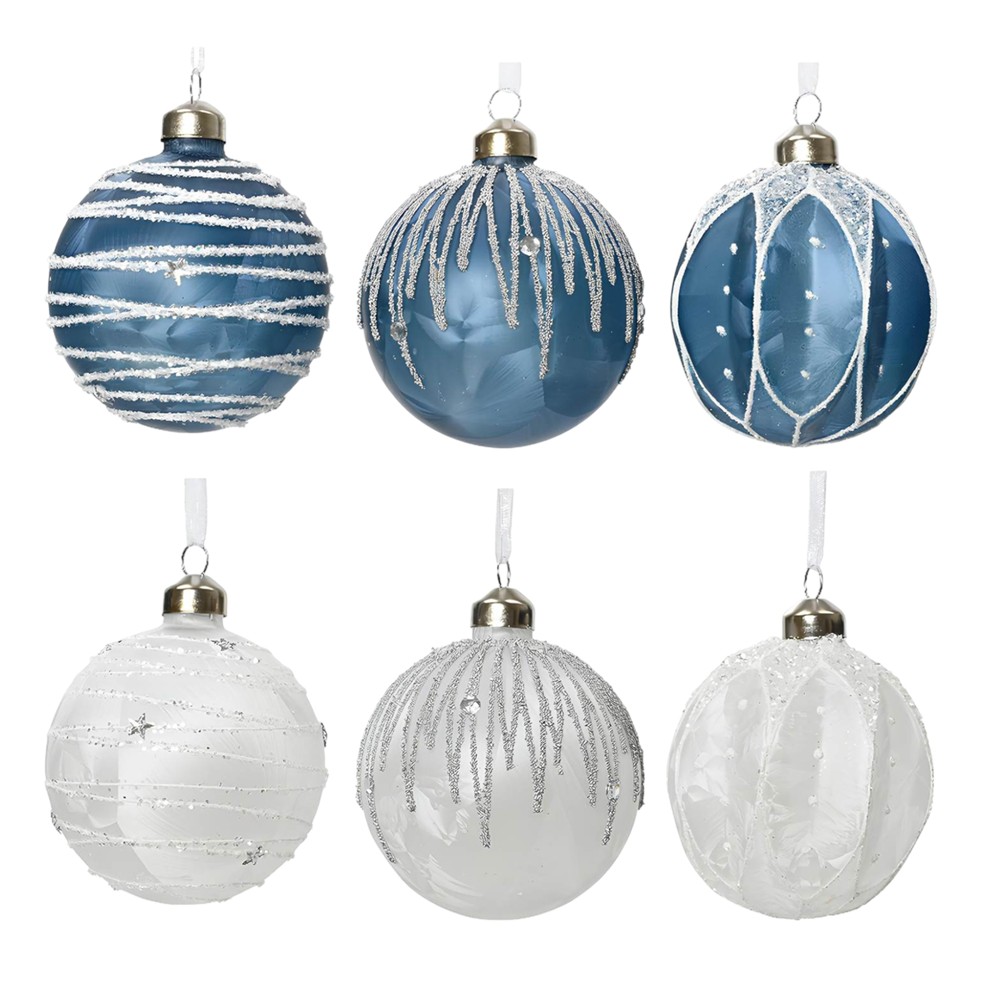 Po vlerësoni:Decorative sphere, glass, blue/white with glitter, D8 cm