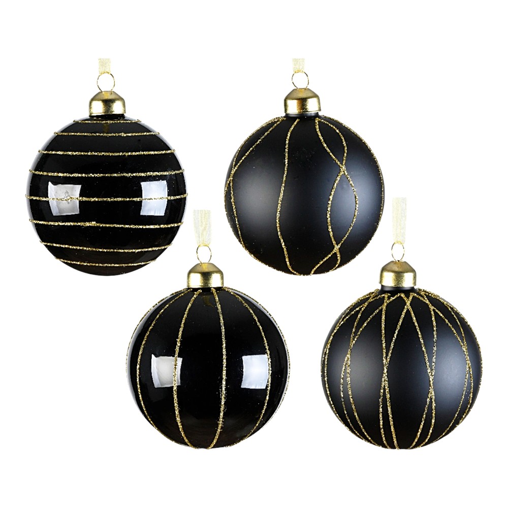 Sfere dekoruese,qelq, ngjyre e zeze me konture gold, D 8 cm