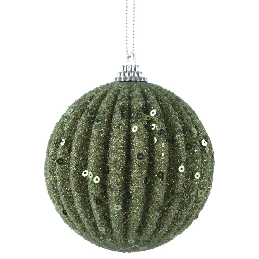 Po vlerësoni:Sfere dekoruese, qelq, ngjyre jeshile me gliter, D8 cm