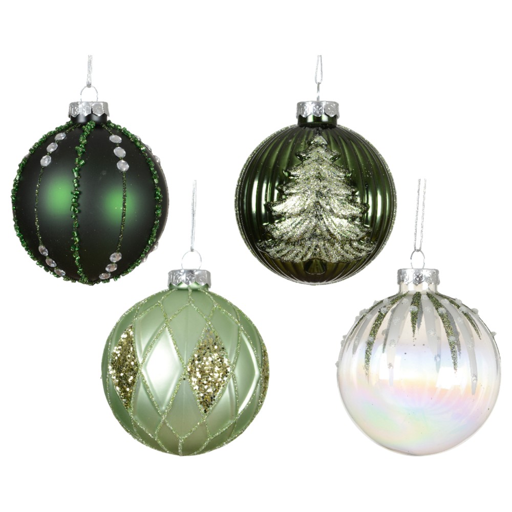 Sfere dekoruese, qelq, ngjyre jeshile, pistaccio, e bardhe, D8 cm
