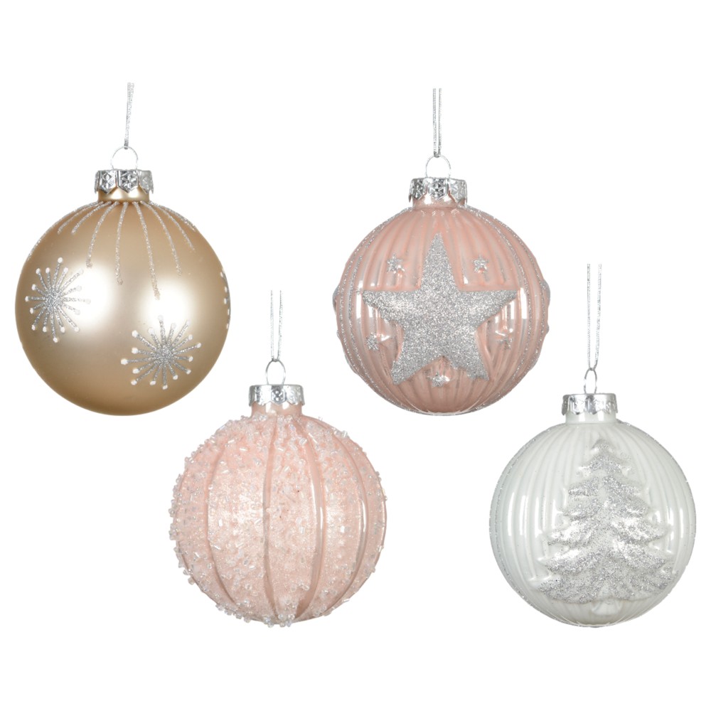 Sfere dekoruese, qelq, ngjyre rose gold, shampanje, D8 cm