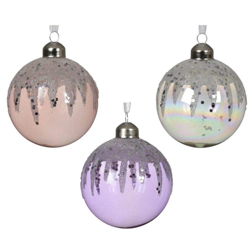 Po vlerësoni:Decorative sphere, glass, semi-transparent color with glitter, D8 cm