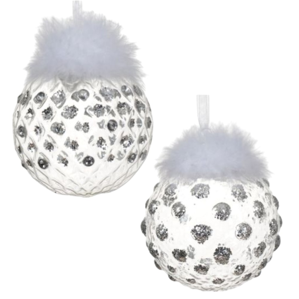 Po vlerësoni:Sfere dekoruese, qelq, ngjyre transparente me pupla, D10 cm
