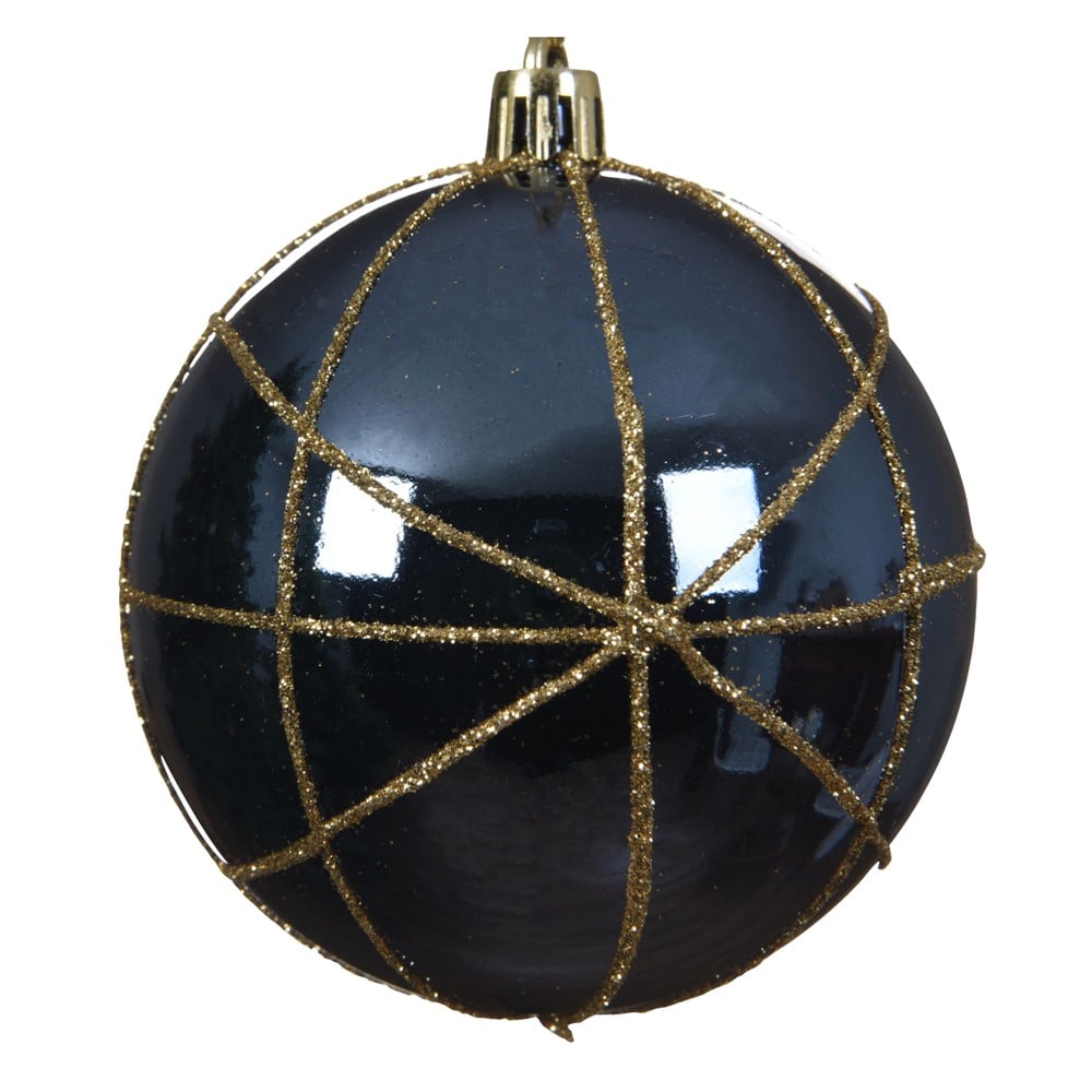 Sferë dekoruese prej qelqi ngjyrë blu me diametër 8 cm. Ky aksesor dekorues përdoret për të zbukuruar pemen e vitit të ri, duke i shtuar magjinë e festave ambjenteve tuaja festive të fundvitit.