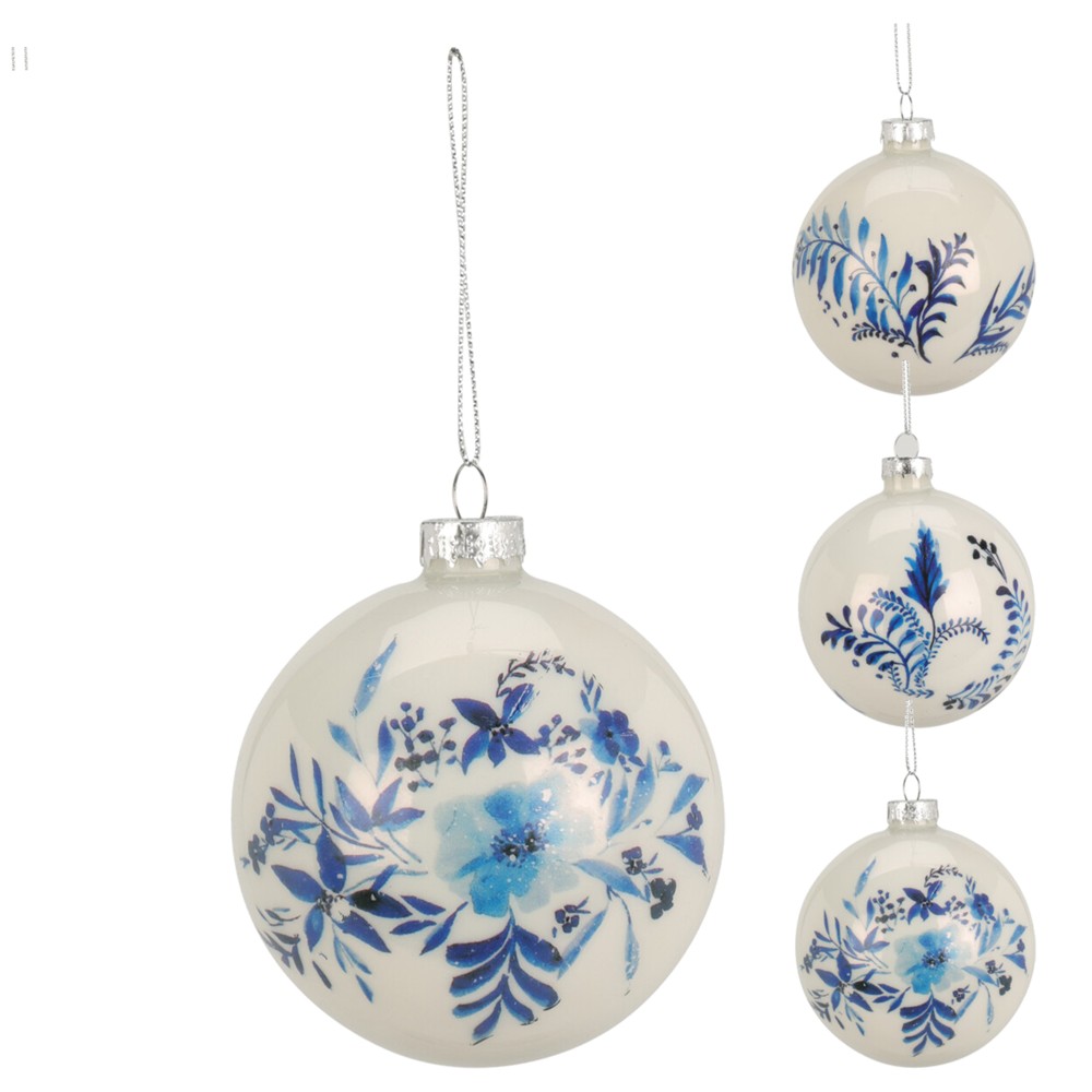 Sferë dekoruese, qelqi, e bardhë/blu, Dia.8 cm