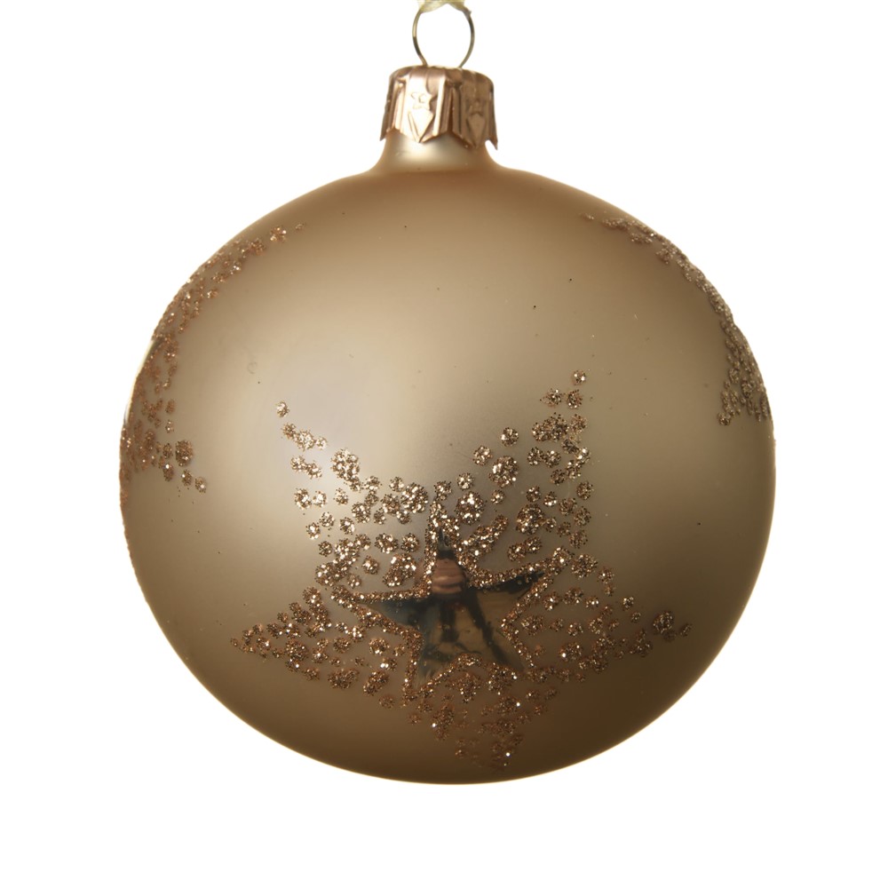 Sferë dekoruese prej qelqi ngjyre perle me diametër 8 cm. Ky aksesor dekorues përdoret për të zbukuruar pemen e vitit të ri, duke i shtuar magjinë e festave ambjenteve tuaja festive të fundvitit.
