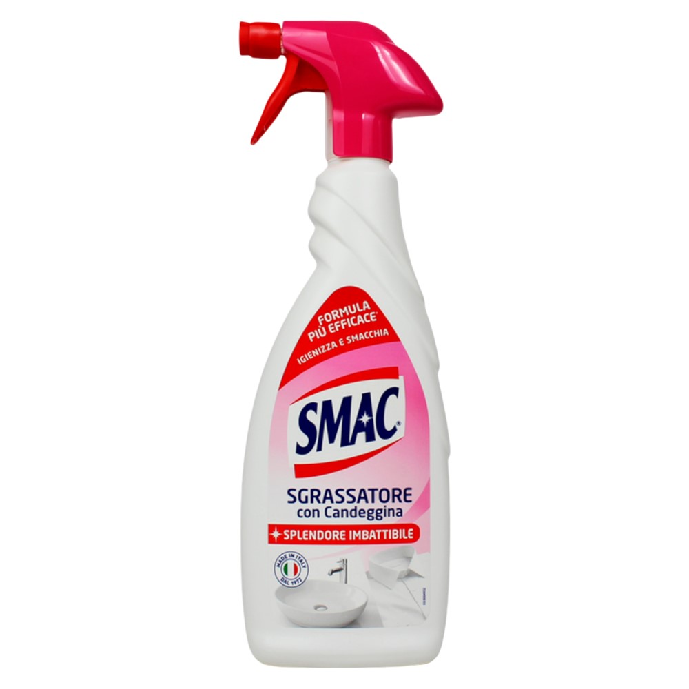 Zbardhuesi dhe degreaser Smac heq yndyrën, dezinfekton dhe largon njollat. Falë formulës së tij me mbetje zero, ajo shpëlahet shpejt duke i lënë sipërfaqet krejtësisht të pastra pa asnjë gjurmë produkti. I përshtatshëm për: kabina dushi, pianurë, banak, pajisje sanitare, pllaka dhe pëlhura të bardha.