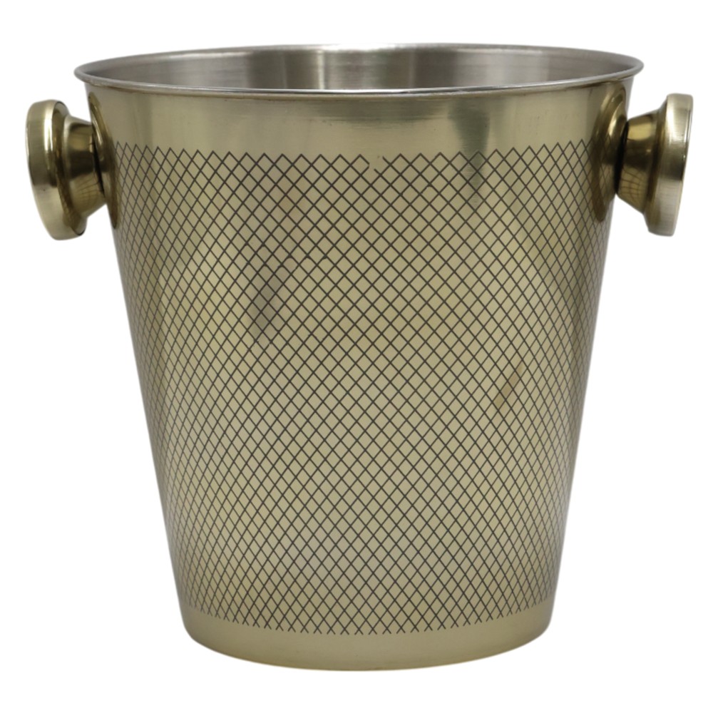 Shampanjere prej inoksi me ngjyrë floriri, me përmasa Dia. 20.2 x H 20 cm. Kjo shampanjere elegante dhe e qëndrueshme është perfekte për të mbajtur shampanjën ose verën e gazuar të ftohtë gjatë çdo eventi. Materiali inox siguron jetëgjatësi dhe lehtësi në mirëmbajtje, ndërsa përfundimi floriri i jep një pamje luksoze dhe të sofistikuar. Praktike dhe stil, kjo shampanjere është ideale për përdorim të përditshëm ose për raste speciale festive.
